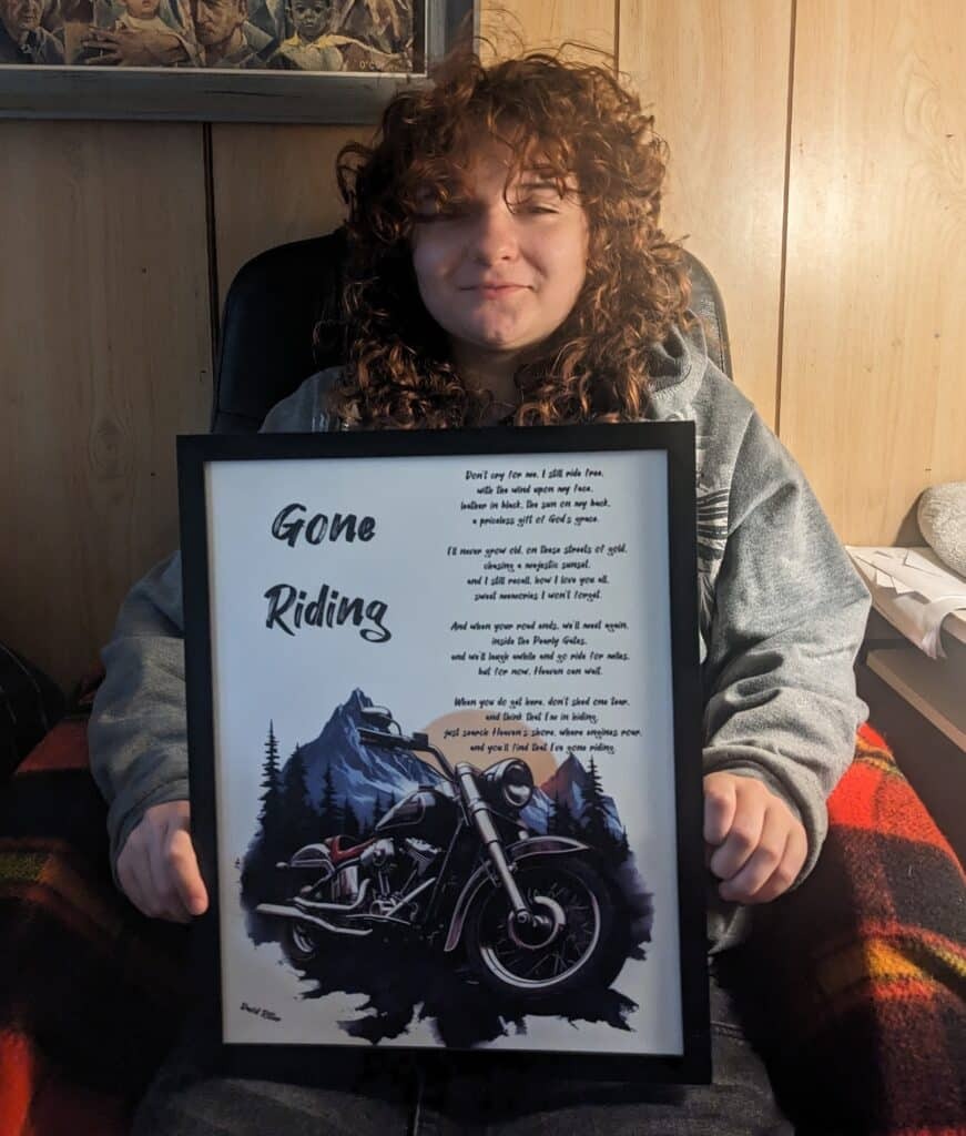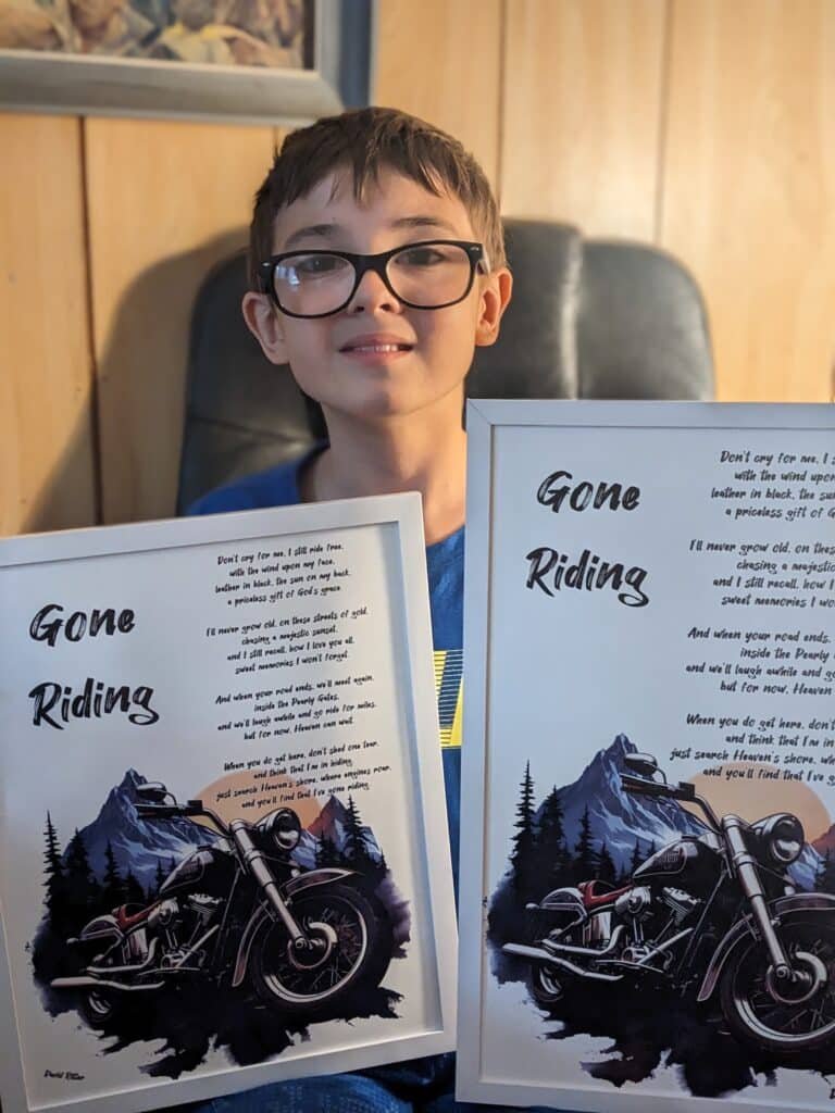 Looking for framed prints, plaques, or digital designs featuring Gone Riding? Visit my Etsy shop to explore a variety of motorcycle and memorial-themed poetry products.